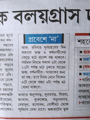 আজকে 'এই সময়ে' খবরটা পড়লাম। তারপর আরেক সূত্রে জানলাম জয়রামবাটিতেও নাকি সূর্যগ্রহণের আগে আগে রান্নাবান্না হয়ে যাবে, খাওয়াও হয়ে যাবে।