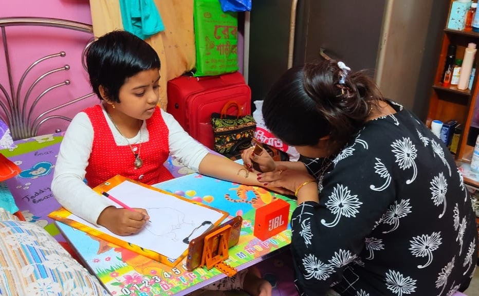সংসারে সবাই তো আর অতশত কপাল করে জন্মায় না যে একটু ফুর্তি করে, গায়ে হাওয়া লাগিয়ে বেড়াবে। না, মানে, পড়াশোনার গল্প মানেই তো সেই এক বিদ্যাসাগর মশায় স্ট্রিটলাইটের তলায় পড়েছিলেন, টিকি বেঁধে শুতেন এই সব কথা খালি। সে সব পুরুষতান্ত্রিক সমাজের পুরোনো কালের কথা। কিন্তু এই যে একজন মানুষ, যার কিনা খোদ মাসির বিয়ে, সে কিনা হাতে মেহেন্দি লাগাতে লাগাতে পড়াশোনা করছে, সেও আবার অনলাইনে, মানে আরকি পড়াশোনা করতে করতে মেহেন্দি লাগাচ্ছে, এমনটা কে কবে দেখেছে? পায়ে আলতা, হাতে মেহেন্দি, সামনে মোবাইল স্ট্যাণ্ডে মোবাইল, মোবাইলের স্ক্রীনে দিদিমণি, চারদিকে আত্মীয়স্বজন, পাড়াপ্রতিবেশীর হইচই, এর মধ্যে কিনা মেয়েটা পড়েই যাচ্ছে, পড়েই যাচ্ছে, পড়েই যাচ্ছে।