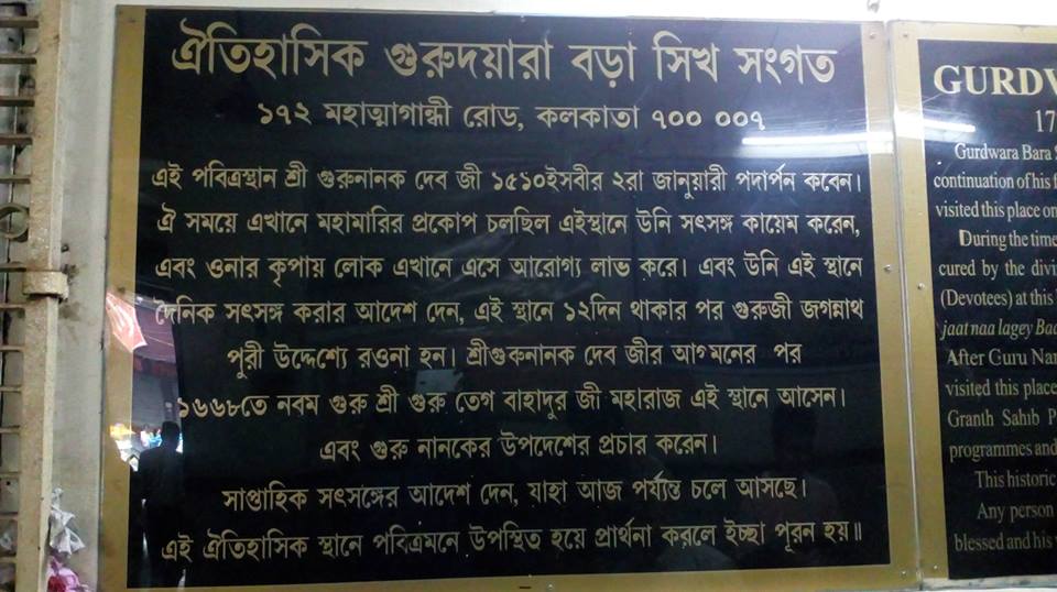 হঠাৎ জানলাম গুরু নানক কলকাতায় এসেছিলেন। ছিলেন বেশ কিছুদিন। ব্যস্ত বর্ষাস্নাত কলকাতার বুকে একটা শান্ত পূতস্মৃতি সমাহিত স্থানে রইলাম কিছুক্ষণ। একজন পাঞ্জাবী ভদ্রলোক এসে বললেন, উপরে লঙ্গরখানাতে খেয়ে নিন কিছু।